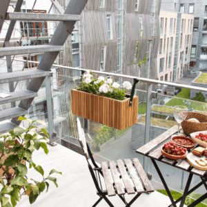 Denne smukke altankasse er lavet af europæisk kvalitetstræ og 100% genanvendeligt plast. Den indeholder et smart selvvandingssystem, som gør den velegnet til den travle hverdag. Det unikke og naturlige design gør den velegnet til de fleste altaner.